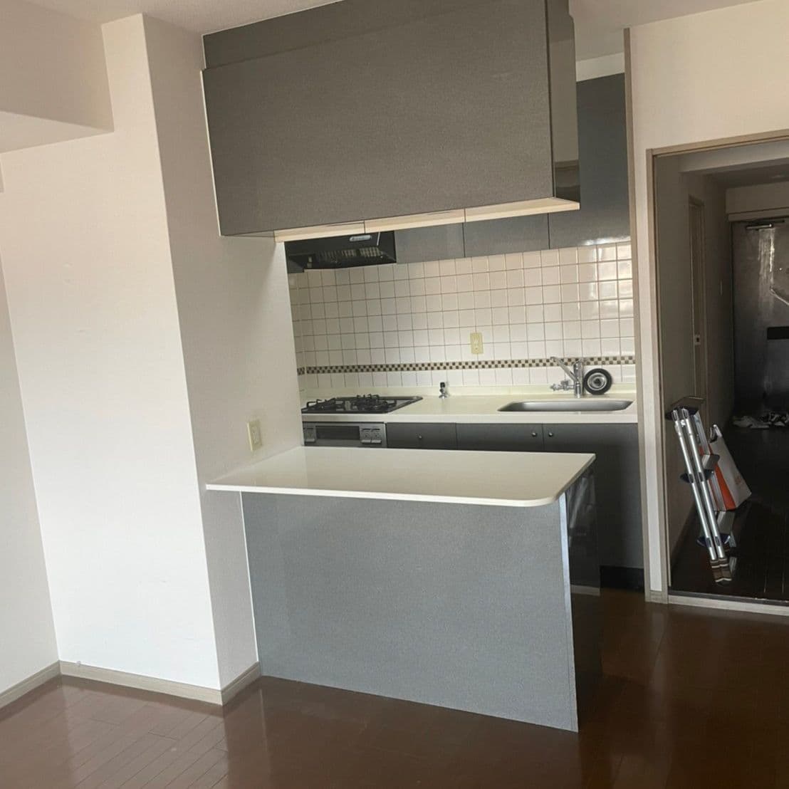 壁面にシンク・カスコンロ等が設置されていたキッチンを対面式にリフォーム。
